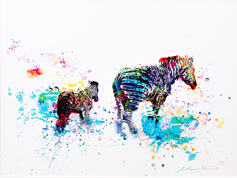 Zebra mit Jungtier, Fotobasis auf Kunstdruck